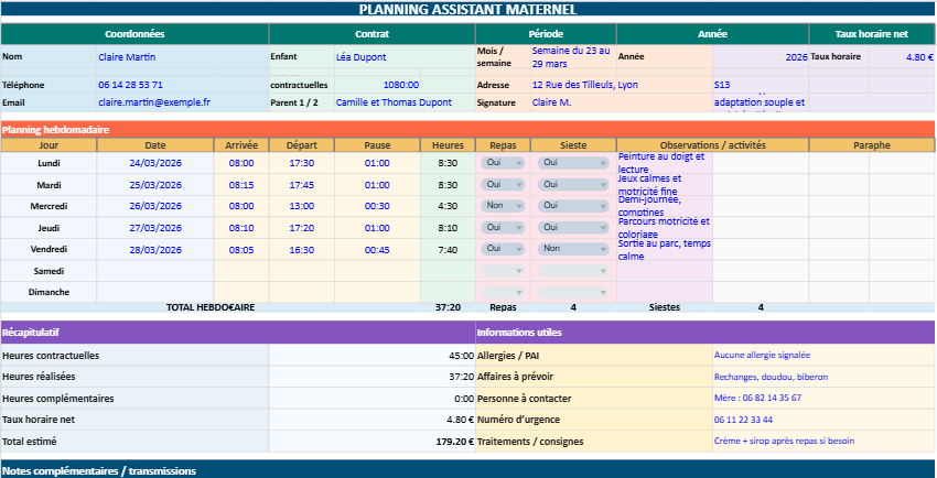 Télécharger des modèles Excel de calcul du salaire assistant maternel et nounou + exemple de fiche de paie assistante maternelle