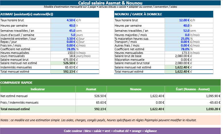 Modèle Excel de calcul du salaire assistant maternel et nounou