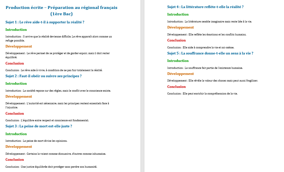 مراجعة الجهوي فرنسية الأولى باك | production écrite français نماذج جاهزة