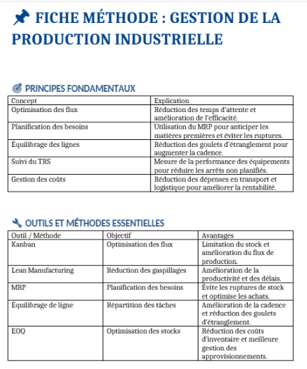 Ces exercices permettent de comprendre les défis de la gestion industrielle et d’appliquer des méthodes analytiques pour améliorer la performance opérationnelle.