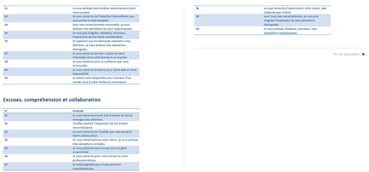 Un document qui rassemble 40 formules de politesse bien choisies devient un outil pratique du quotidien :