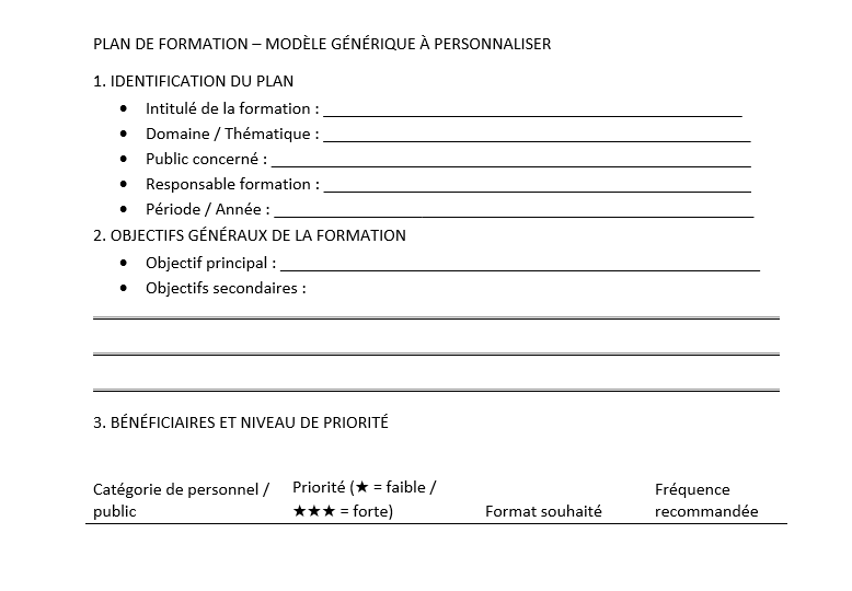 Bienvenue sur cette page où nous vous guiderons dans la création d’un plan de formation pour votre organisation.