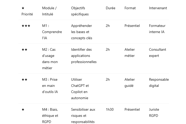 Télécharger un modèle Word de plan de formation à remplir et un exemple sur la formation IA