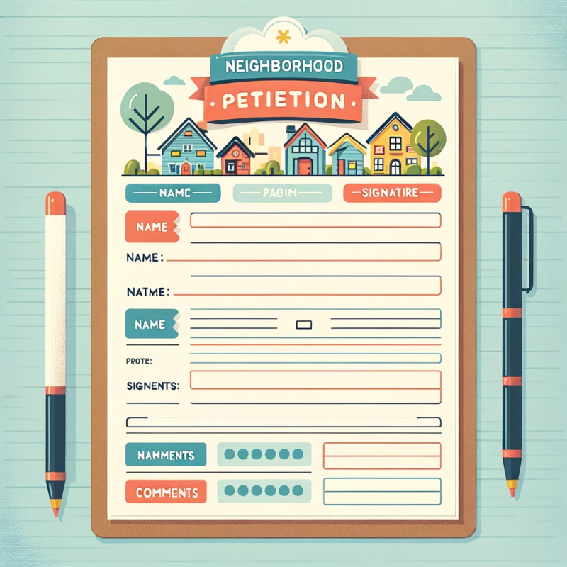 - Pétition pour l’arrêt d’un projet immobilier qui affecte négativement un quartier.