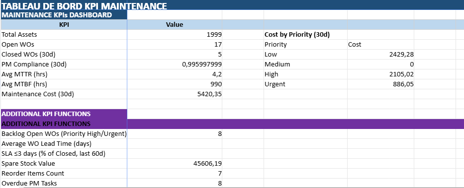 This setup transforms Excel from a simple spreadsheet tool into a powerful CMMS-like solution.