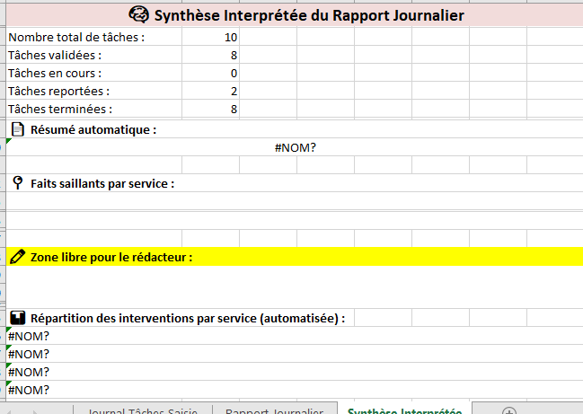 Modèle structuré et automatisé destiné à produire un rapport journalier des tâches opérationnelles