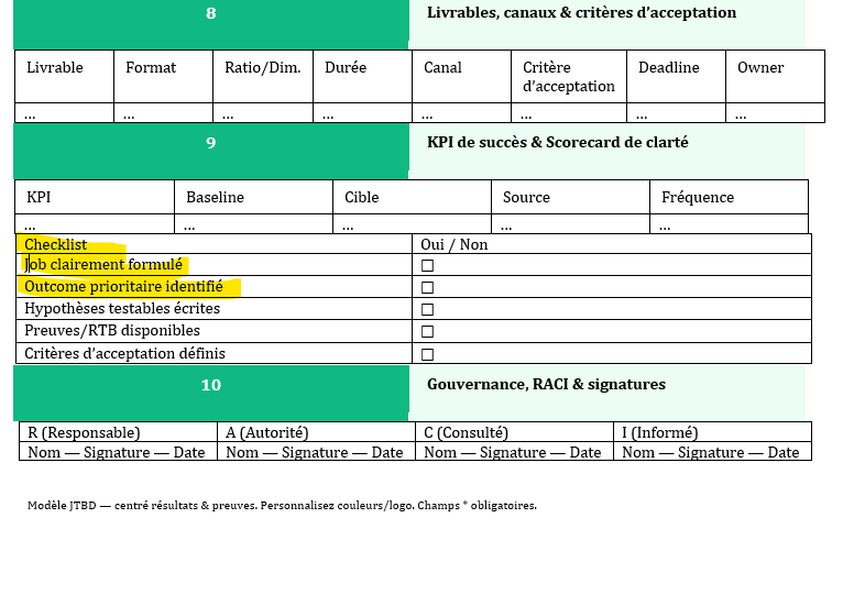 L’ossature d’un brief JTBD (10 blocs qui comptent)