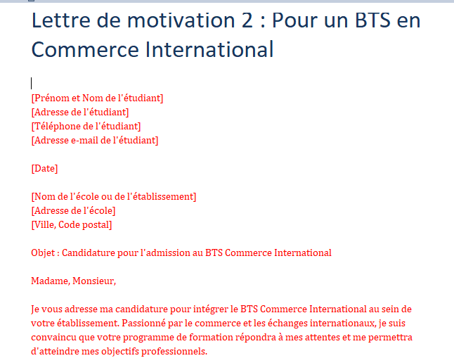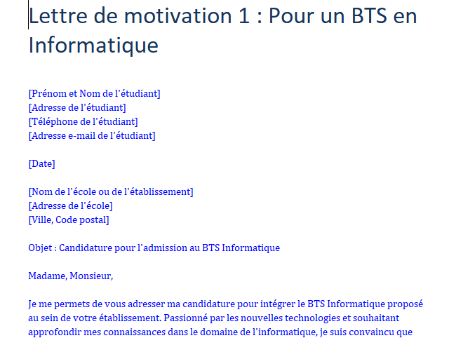 Cet page vous aide à s’inscrire au BTS sans passer par la plateforme Parcoursup 👇 Télécharger des modèles de lettres de motivation pour postuler
