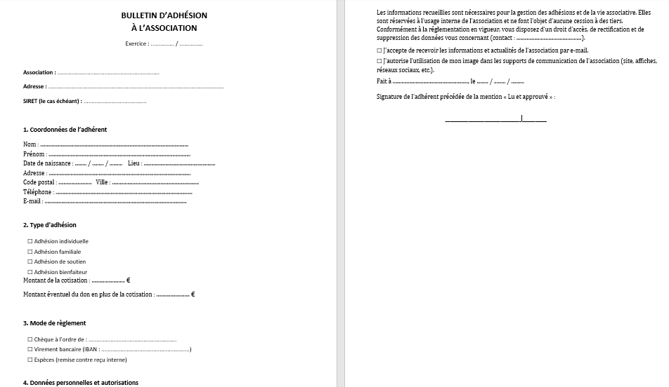 Le bulletin d’adhésion a l’air de ne rien dire : une page A4, quelques traits à compléter pour le nom, l’adresse, le montant à régler. Pourtant, c’est souvent le premier vrai contact entre une personne et l’association. C’est là que le futur membre se présente, accepte d’entrer dans la vie collective, confie ses coordonnées, se situe par rapport au projet qui lui est proposé.