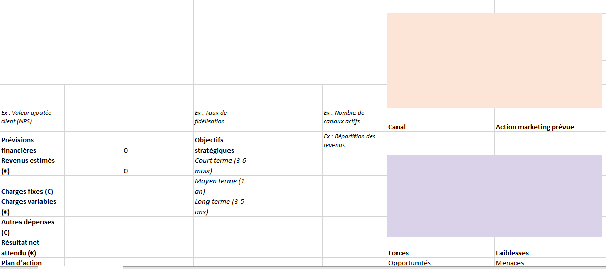En format Excel ou papier, le BMC vierge permet de tester plusieurs hypothèses et modèles avant de vous engager.