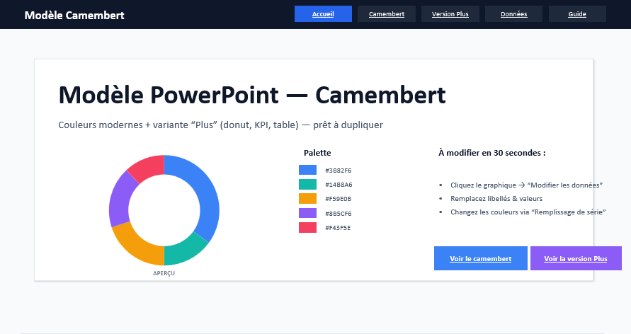 Mode d’emploi rapide – Camembert PowerPoint éditable (automatisé)