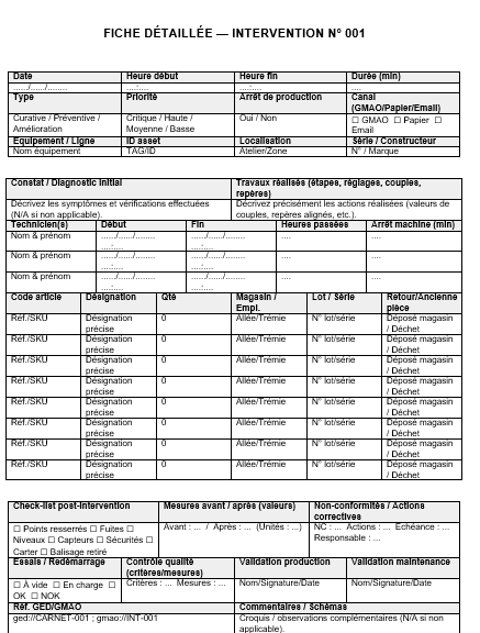 - Références GED/GMAO & zone “schéma/commentaires”.