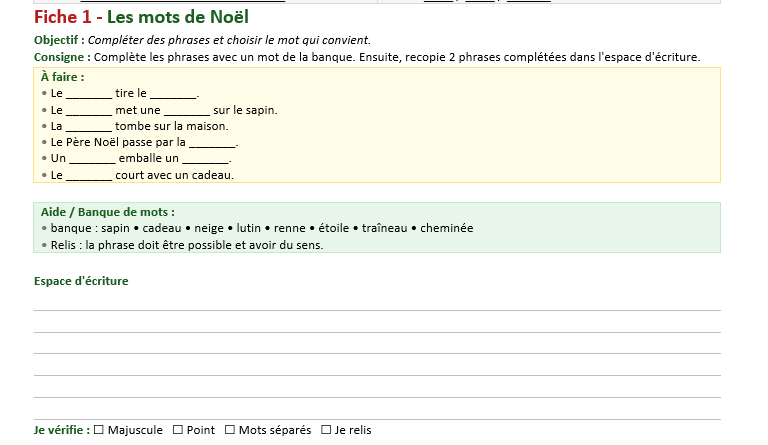 LireTélécharger 10 fiches “Production d’écrits – Noël” CE1 à imprimer ⬇️ Des activités prêtes à imprimer pour faire écrire les