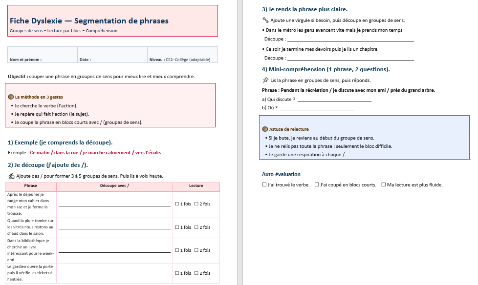 Des fiches lisibles, rassurantes et vraiment efficaces à imprimer La dyslexie oblige surtout à changer de point de vue :
