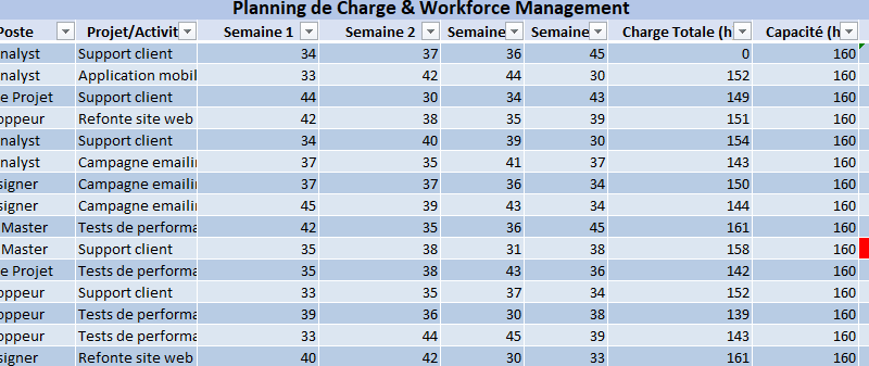 LireTélécharger un modèle Excel Interactif & Dynamique Planning de Charge basé sur le workforce management ⬇️ La maîtrise des ressources