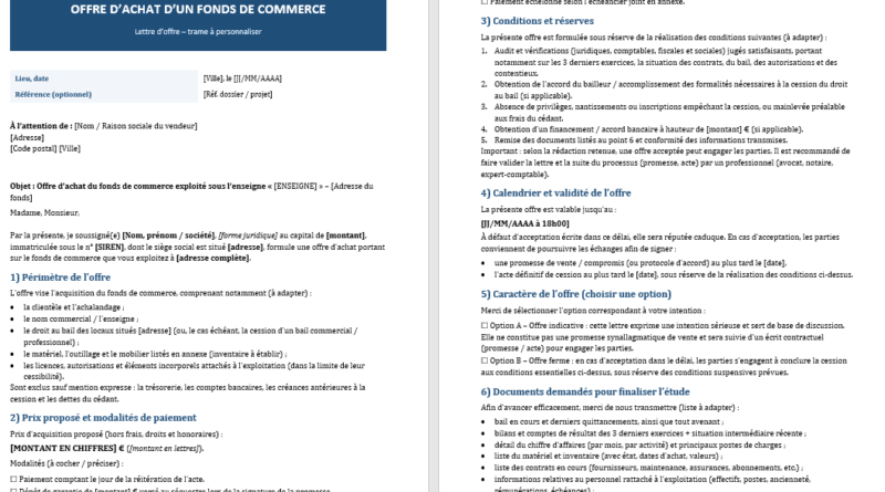LireTélécharger un modèle Word d’offre d’achat de fonds de commerce ⬇️ Une reprise de fonds de commerce commence rarement par