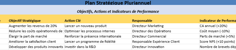 LireUn plan stratégique pluriannuel est bien plus qu’un document de planification. Il constitue une feuille de route détaillée, structurée et