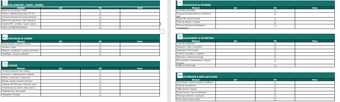 - Version classique A4 paysage (Word) : Checklist Camping-Car