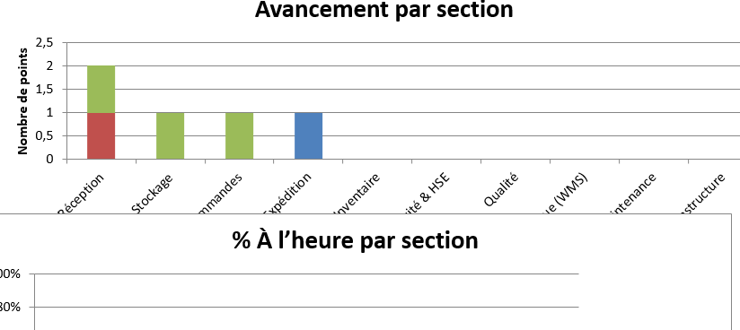 - S3 : pilote sur 1–2 zones (réception + picking), rituels quotidiens, premiers KPI.