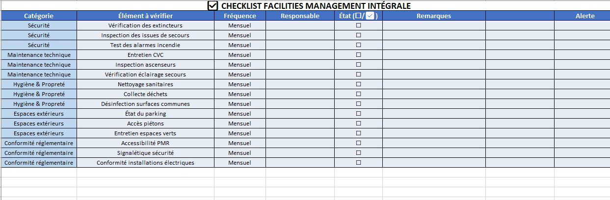✅ Critères de Vérification pour une Checklist Facilities Management