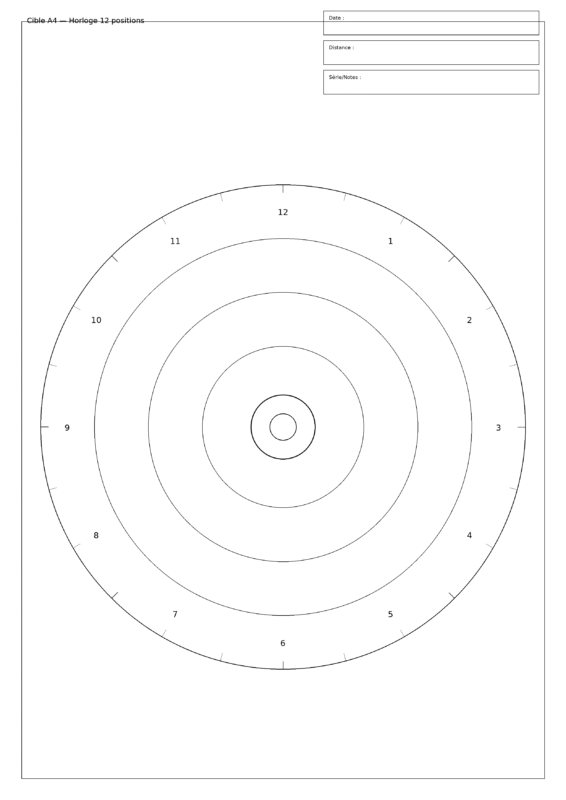 Idée. Transformer le cercle en cadran d’orientation. Les chiffres 1→12 matérialisent immédiatement un angle (direction de dérive, appel de vent, tenue de visée).