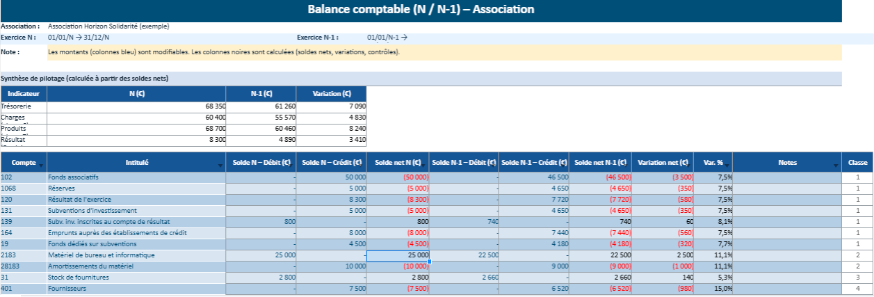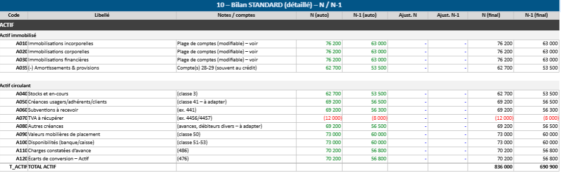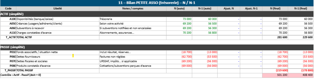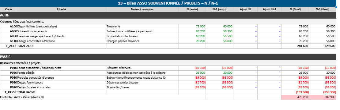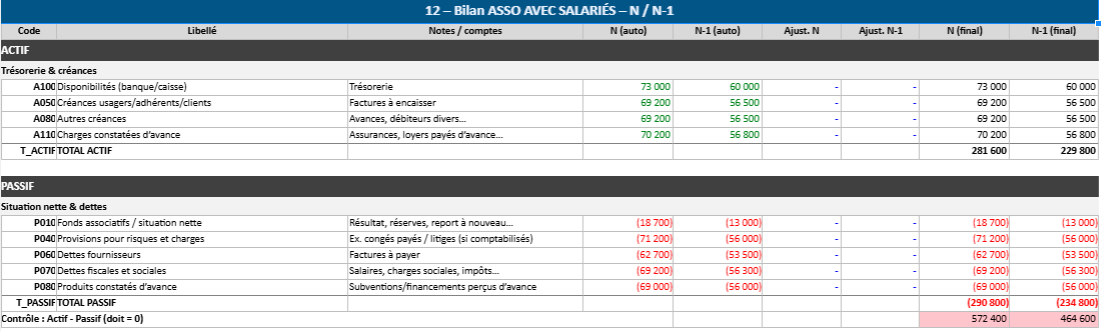 1️⃣ Bilan comptable d’association : Modèle Excel dynamique