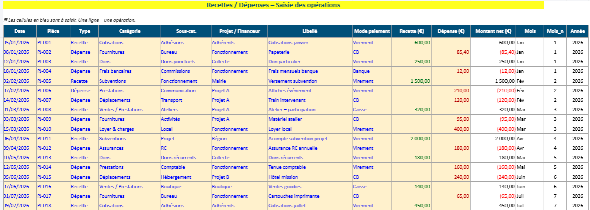 La version “gratuite” la plus utile consiste à suivre les grandes rubriques : cotisations, dons, subventions, recettes d’événements, achats, frais de fonctionnement, déplacements, communication, etc. Quand le budget et le journal dialoguent, vous obtenez une vision claire, même si vous n’avez aucune formation comptable.