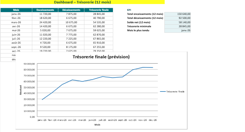 Résultat : tu repères les mois où la trésorerie se contracte, et tu peux agir avant d’être “au pied du mur”.