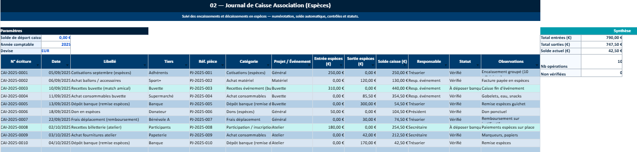 🟠Journal de caisse – AssociationFichier Excel à télécharger