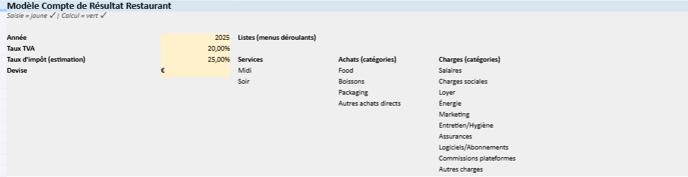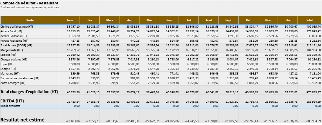 Compte de résultat restaurant dans Excel : Modèle automatisé