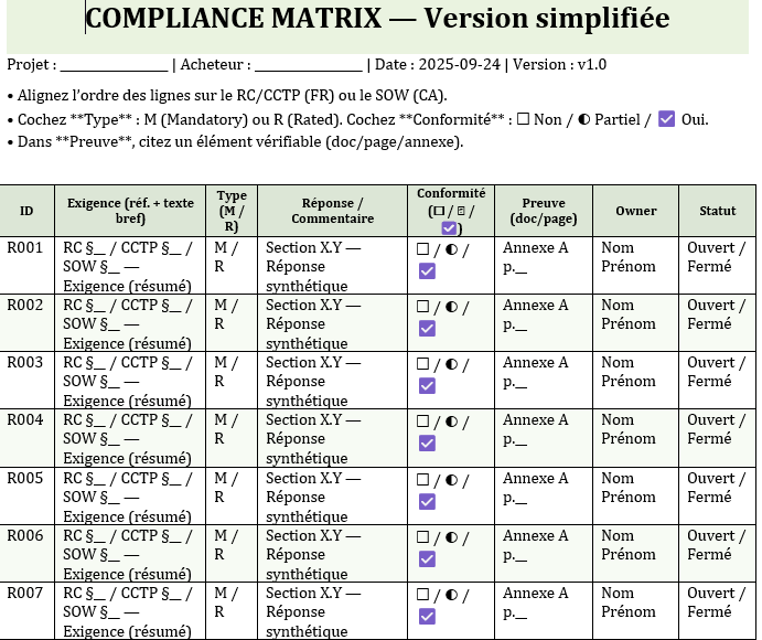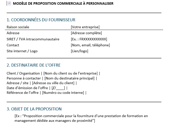 • les modalités de suivi prévues (réunions de bilan, indicateurs, points d’étape).
