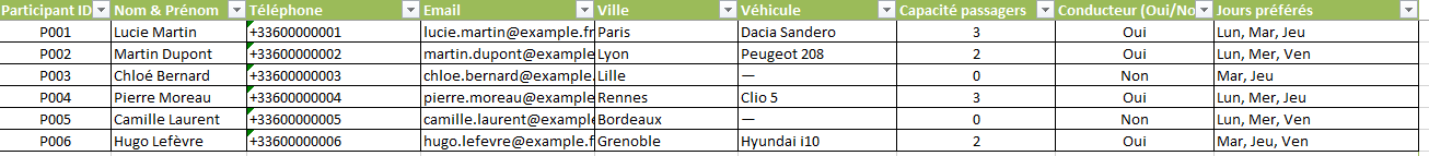 Un tableau d’organisation (participants, trajets, coûts, péages) formalise les règles et évite les malentendus. Fixez une contribution par siège fondée sur km × coût/km + péages.