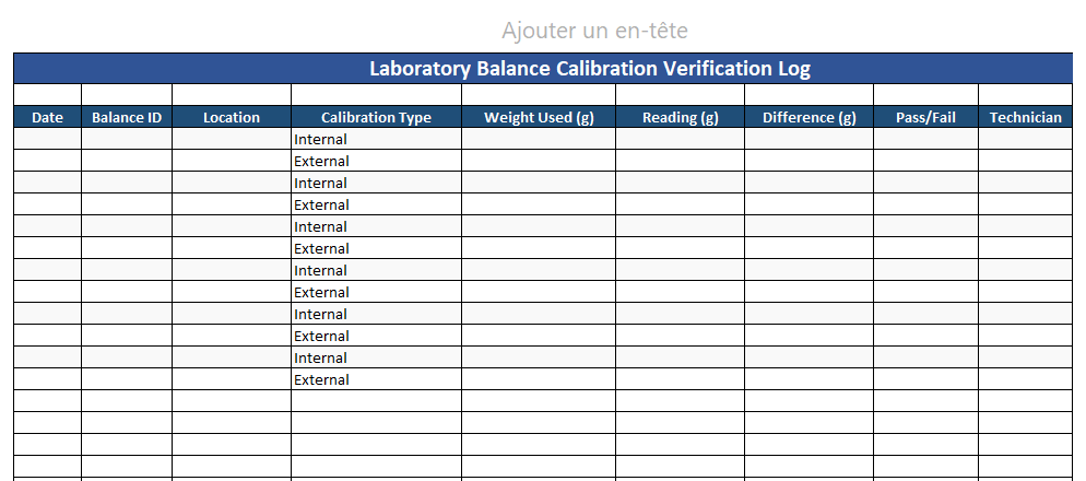 Download Laboratory Balance Calibration Verification Log Automated in Excel ⬇️