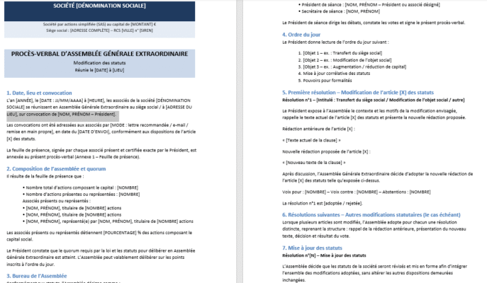 Une séance bien tenue s’appuie sur un fil directeur que le modèle de procès-verbal rend visible. Présence et feuille d’émargement, constitution du bureau, rappel de l’ordre du jour, examen de chaque point, questions diverses, clôture : chaque étape trouve sa place, avec un ton neutre mais précis. Les résolutions structurantes – investissement, partenariat, nomination, gouvernance, gestion des risques – sont isolées, contextualisées, puis formulées dans un langage décisionnel clair. Cette discipline formelle offre deux garanties : elle facilite le travail des administrateurs, qui naviguent d’un point à l’autre sans se perdre, et elle sécurise la valeur probante du document en cas de contrôle, d’audit ou de contentieux ultérieur.