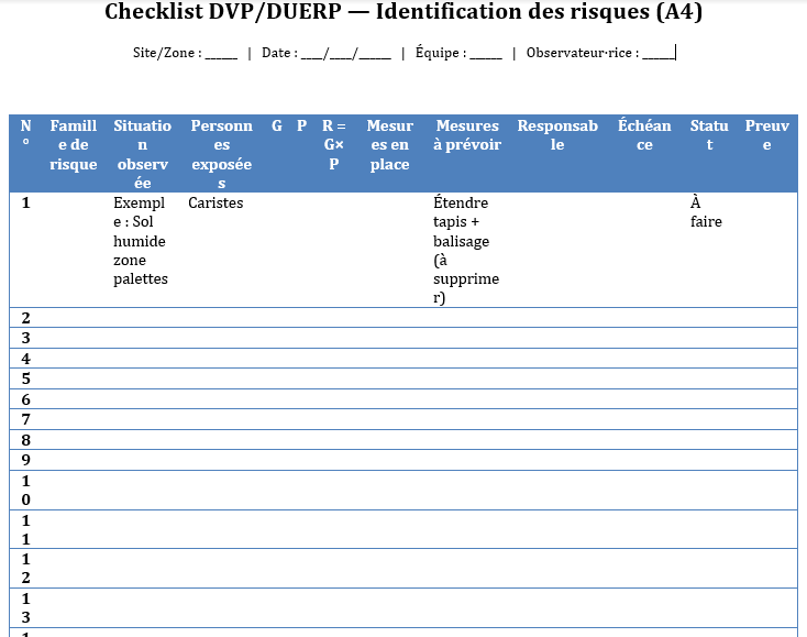 DUERP- Exemple complet + Checklist DVP/DUERP identification des risques professionnels