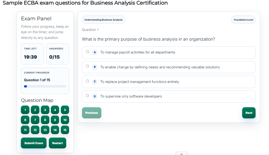 The ECBA is often associated with foundational knowledge, though that should not be confused with superficial knowledge. The exam expects candidates to understand core business analysis ideas and to recognize how those ideas appear in practical situations. That means success depends on more than remembering definitions. It depends on being able to interpret what a question is really asking and identify the most suitable option.