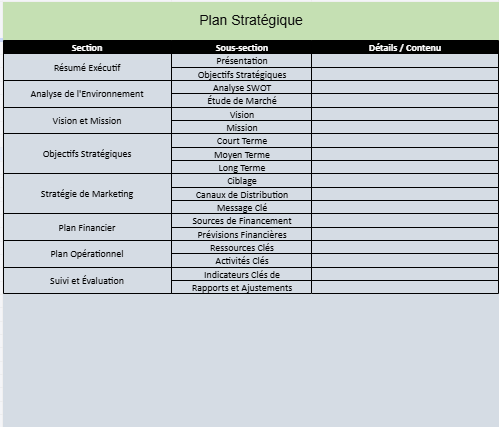 Si vous souhaitez des modèles ou des outils pour structurer votre plan stratégique, de nombreux gabarits Excel et Word sont disponibles pour vous aider à démarrer.
