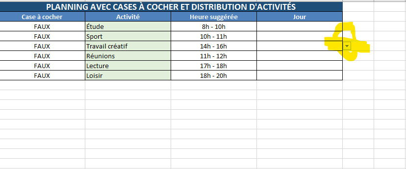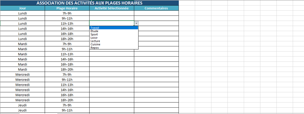 📋 Modèle Excel – Association des Activités aux Plages Horaires