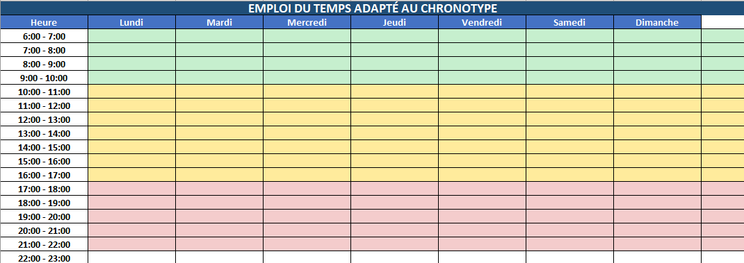 🧠 3. Emploi du temps selon chronotype