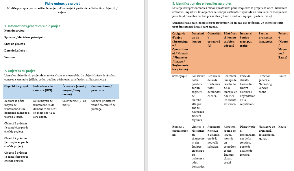 Enjeux de projet : clarifier ce qui se joue derrière les objectifs + Modèle Word et Excel