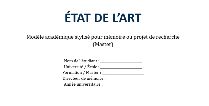 Dans tout projet de recherche universitaire, la section état de l’art occupe une place centrale. Elle représente la première démonstration de maturité scientifique de l’étudiant. Avant même d’exposer la méthodologie ou les résultats attendus, le chercheur doit prouver qu’il connaît les travaux déjà réalisés dans son domaine.