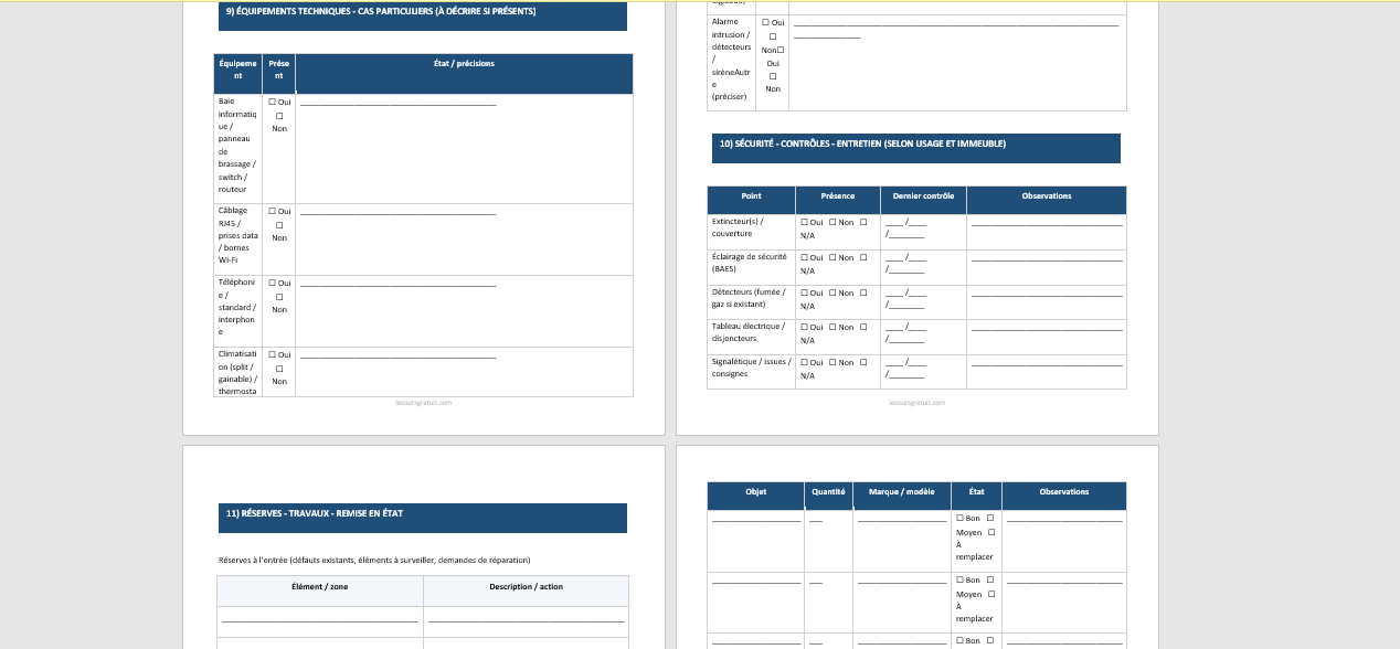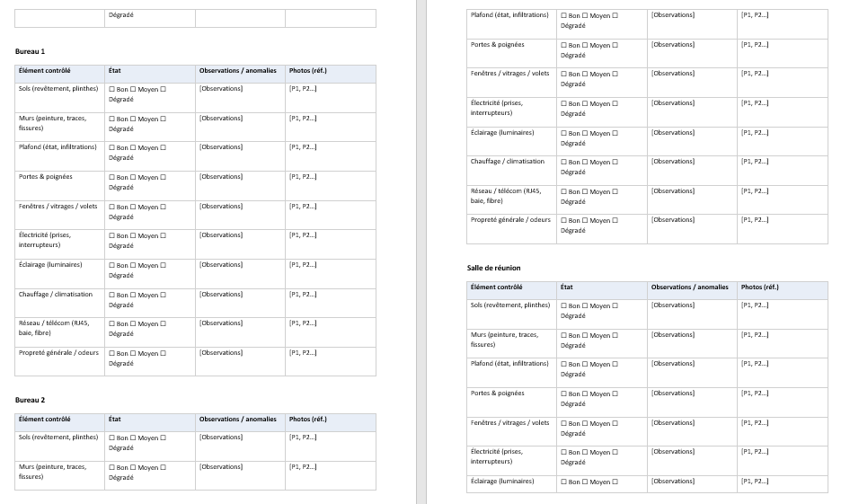 Ajoutez une ligne “Niveau d’usure à l’entrée” (léger / moyen / marqué) sur les postes sensibles (peinture, sols, sanitaires).