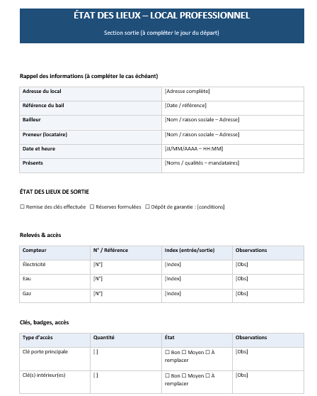 État des lieux local professionnel Word