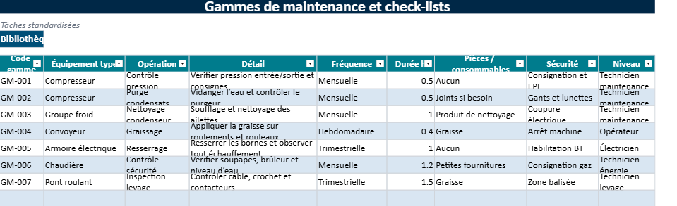 Dans la pratique, cette feuille renforce la cohérence des interventions. Deux techniciens n’interprètent plus différemment une même action préventive. Le niveau d’exécution gagne en homogénéité.