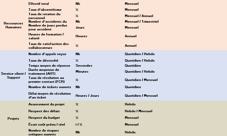 • Période de calcul (mensuel, trimestriel, rolling 12 mois…)