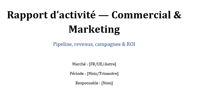 KPI, résumé exécutif, plan d’actions, risques, budget, annexes, export PDF, trame de rapport, modèle DOCX, reporting, indicateurs, suivi périodique