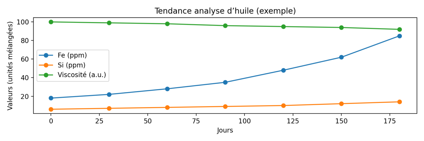 - Intervention planifiée si tendance confirmée : contrôle étanchéité, filtration, renforcement filtration, vidange ciblée, inspection organes.