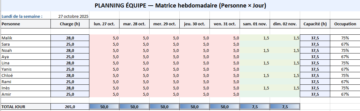 - Calculez le stock final de chaque article à la fin de la semaine.