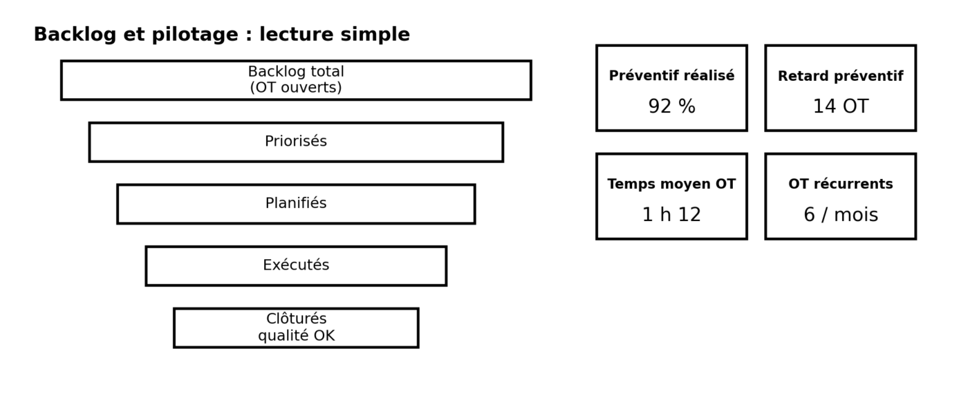 On vous présente un état : OT ouverts, OT priorisés, planifiés, exécutés, clôturés.