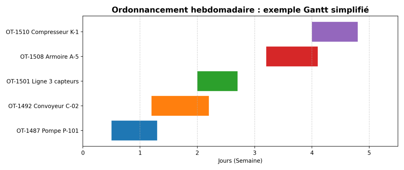 Conclusion : ce préventif représente une charge faible à l’échelle d’un mois. L’enjeu réel devient l’ordonnancement, les fenêtres d’arrêt, les pièces, et la discipline de clôture GMAO.